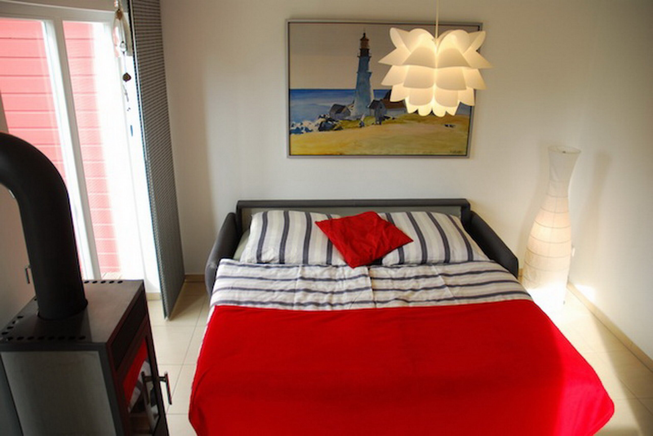 Im Schlafzimmer stehen ein geräumiger Kleiderschrank und ein Sideboard zur Verfügung. Die Matratzengröße Doppelbett beträgt 2 x 80 x 200 cm. Die Einzelbetten haben eine Größe von 100 x 200 cm.